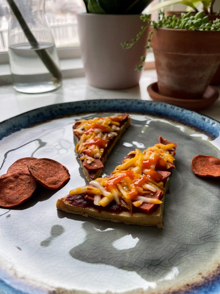 Open and drain tofu, press if needed. Air Fry tofu at 350 degrees fahrenheit for 15-20 minutes, flipping halfway. Preheat oven to 350 degrees fahrenheit. Once the tofu has finished Air Frying and it’s nice and crispy, assemble the Tofu Pizza Tapas on a parchment lined baking sheet. Place the baking sheet in the preheated oven for 6-8 minutes, serve and enjoy!
